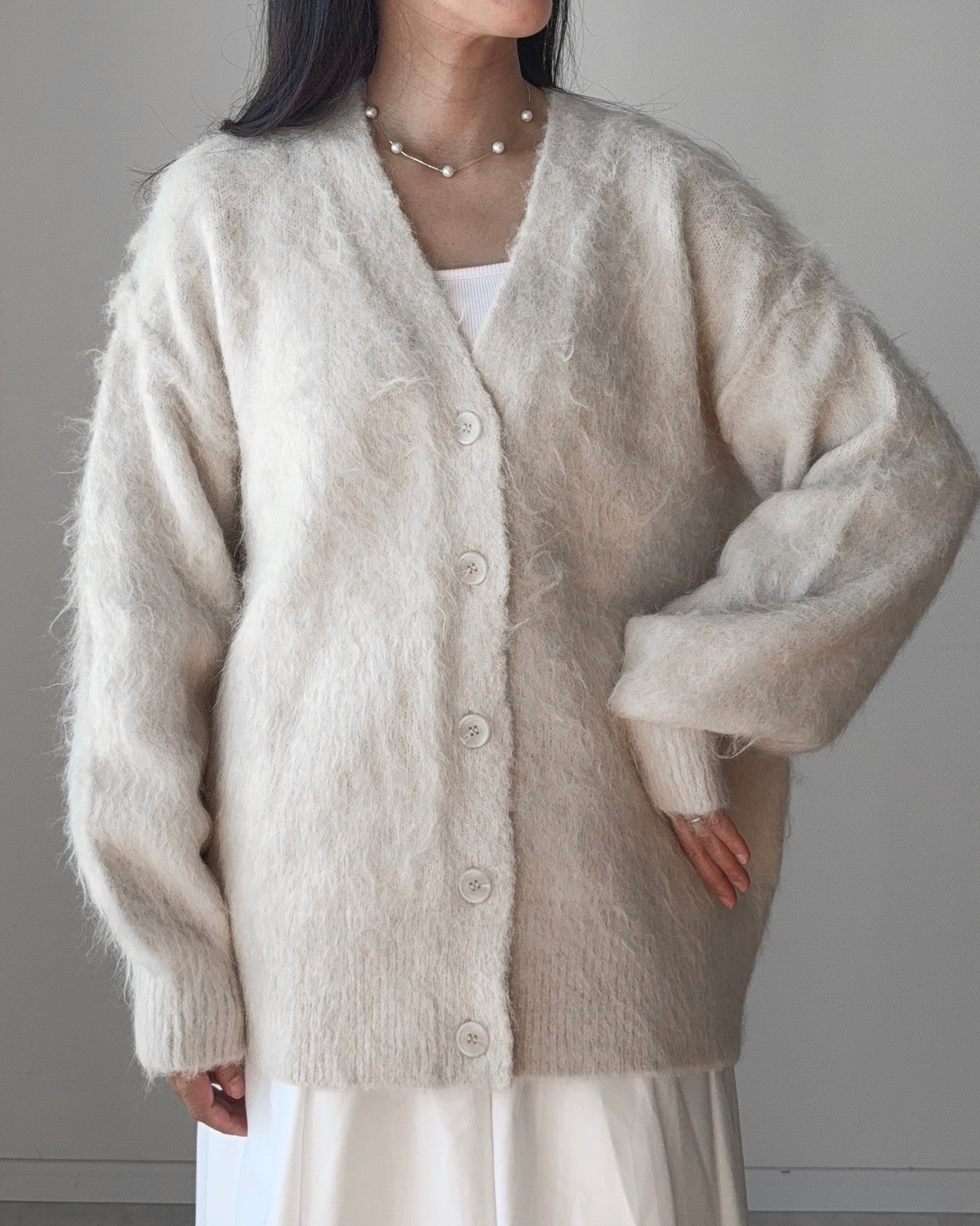 シャギーニットカーディガン(アイボリー)