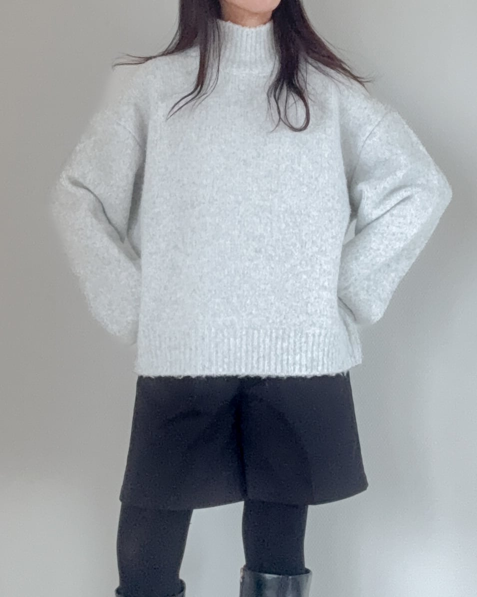 ウールブレンド素材ならではの、やわらかな肌触りとあたたかみが魅力のハイネックニット。ドロップショルダーと程よくゆとりのあるシルエットが、自然な抜け感のあるリラックスした雰囲気を演出します。